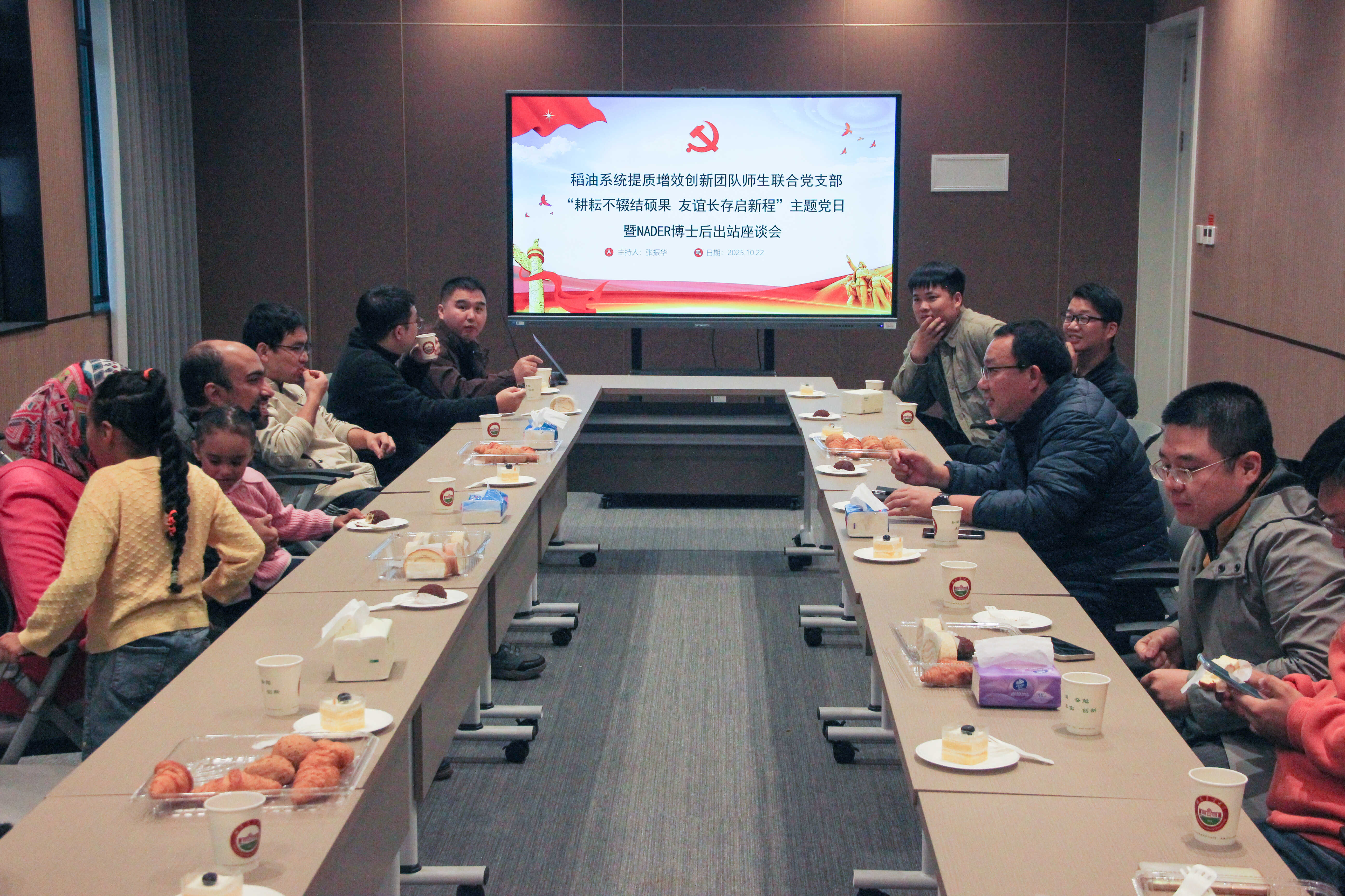 新学期以来,稻油系统提质增效创新团队师生联合党支部精心策划系列主题党日活动,构建起"固本-开新-传承-致远"四位一体的党建工作新格局。继"传承和弘扬伟大抗战精神 担当中华民族伟大复兴使命"的历史寻根、"汇聚新力量 启航新征程"的新学期动员、"致敬耕耘、传承使命"的荣休座谈之后,本次"Nader博士后出站座谈会"以"耕耘不辍结硕果,友谊长存启新程"为主题,将党建、统战与国际交流有机融合,实现了活动内涵从历史纵深到现实担当、从精神传承到国际拓展的深化提升。四次活动层层递进,形成了从筑牢信仰根基、激发团队活力、传承育人使命到扩大国际影响的完整闭环,持续增强了支部的政治领导力、思想引领力、群众组织力和社会号召力,为团队高质量发展注入了源源不断的精神动力,也为学院国际化人才培养和学科建设提供了坚强的组织保障。