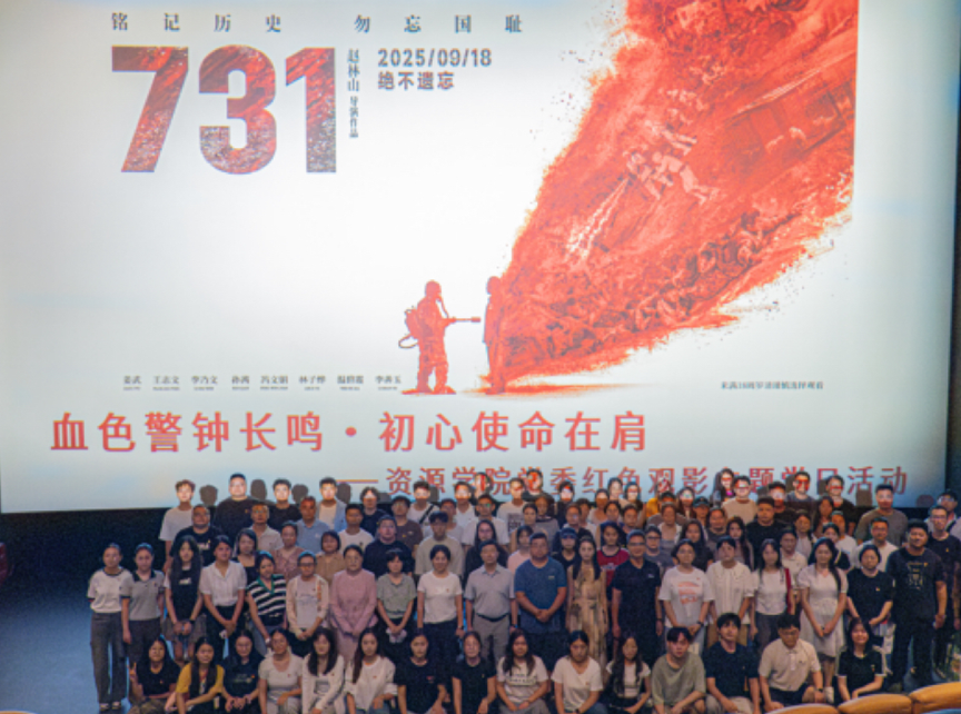 为铭记历史、砥砺初心,资源学院党委于“九一八”事变纪念日组织全体师生党员在龙湖芙蓉天街博纳国际影城开展主题党日活动,集体观看历史题材影片《731》,通过光影回溯民族苦难,激发党员的爱国情怀与使命担当。