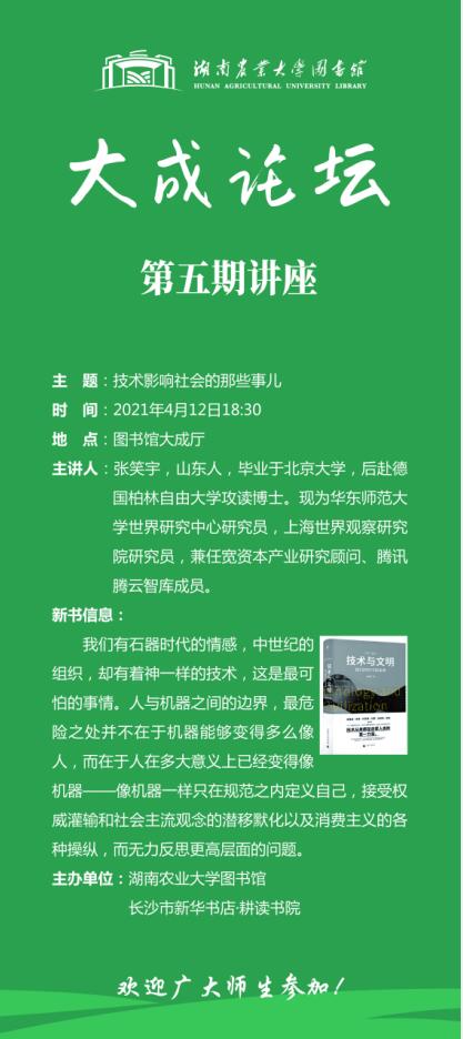 “大成论坛”:第五期讲座--技术影响社会的那些事儿