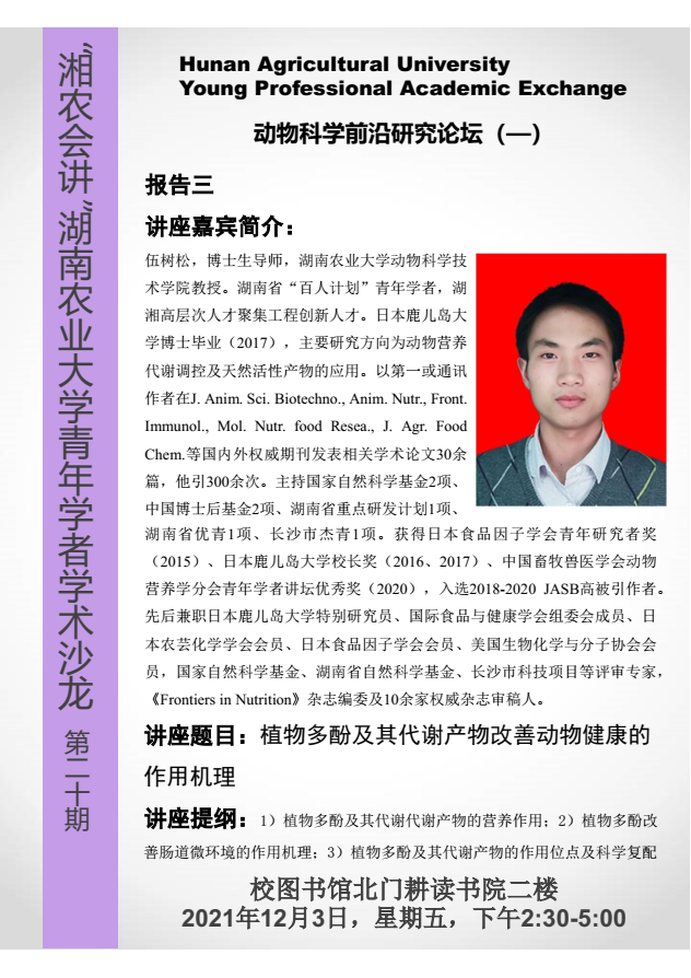 “湘农会讲”湖南农业大学青年学者学术沙龙第二十期报告三
