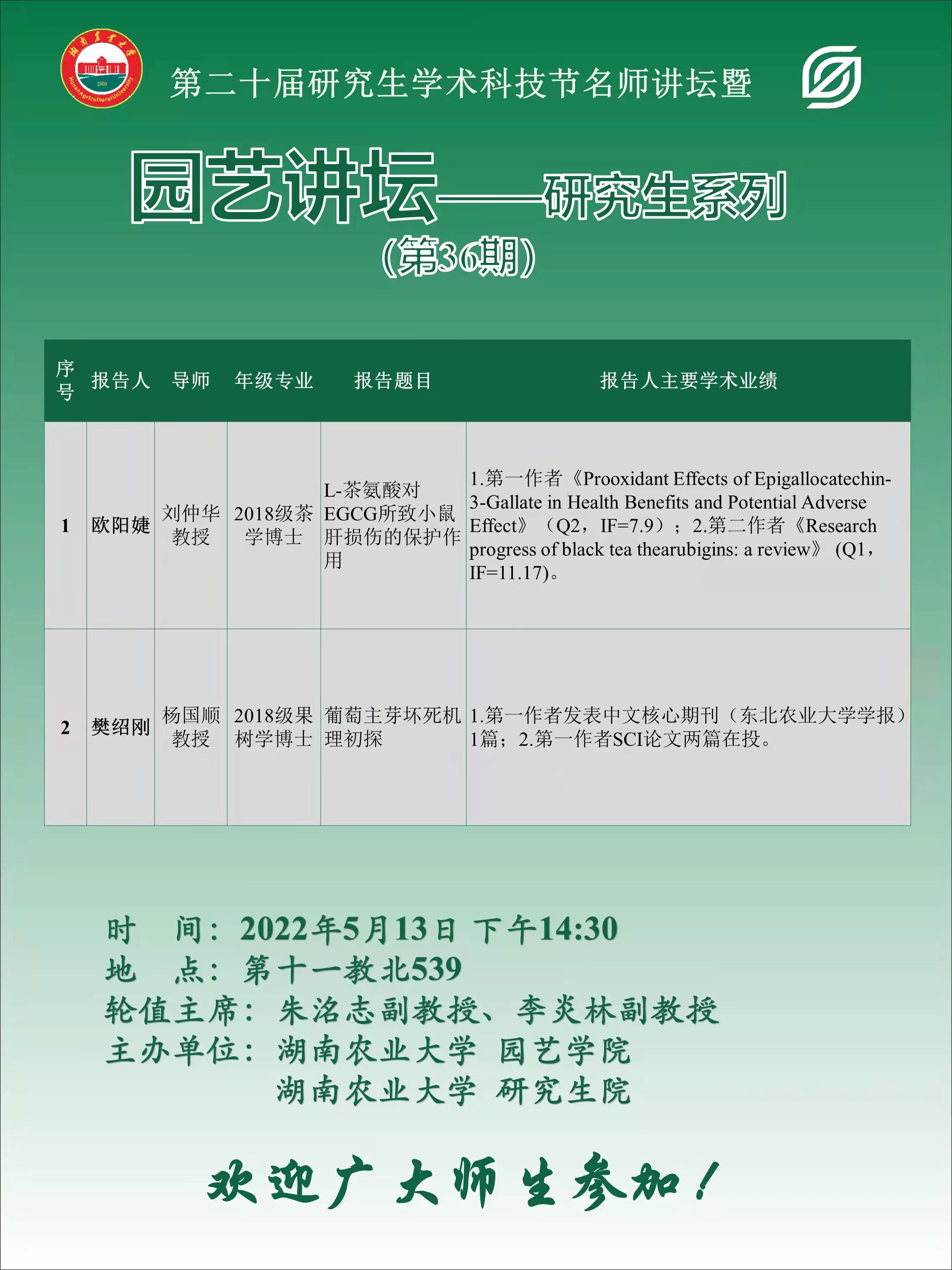 园艺讲坛--研究生系列(第36期)