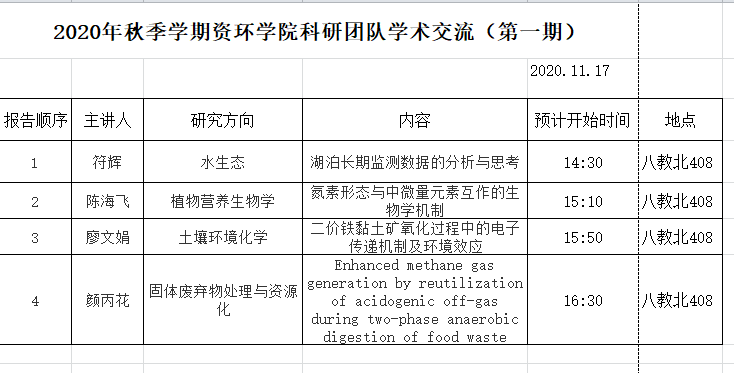 2020年秋季学期资环院科研团队学术交流(第一期)