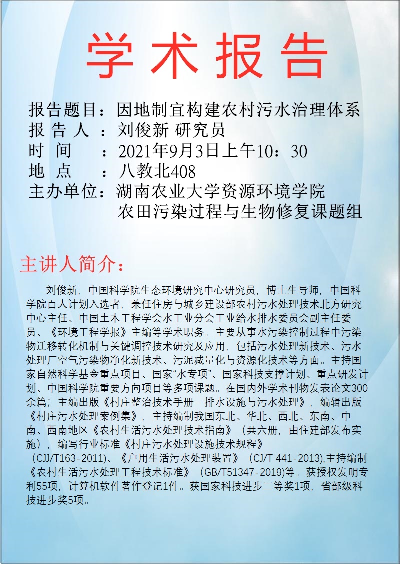 《因地制宜构建农村污水治理体系》——刘俊新研究员学术报告
