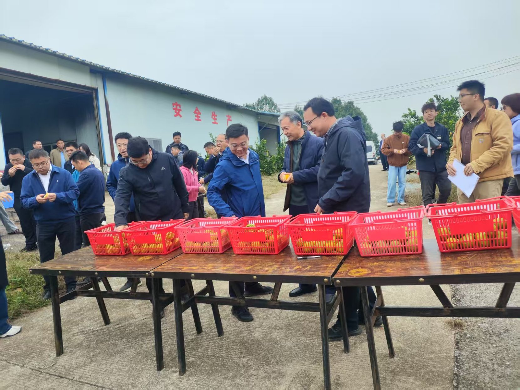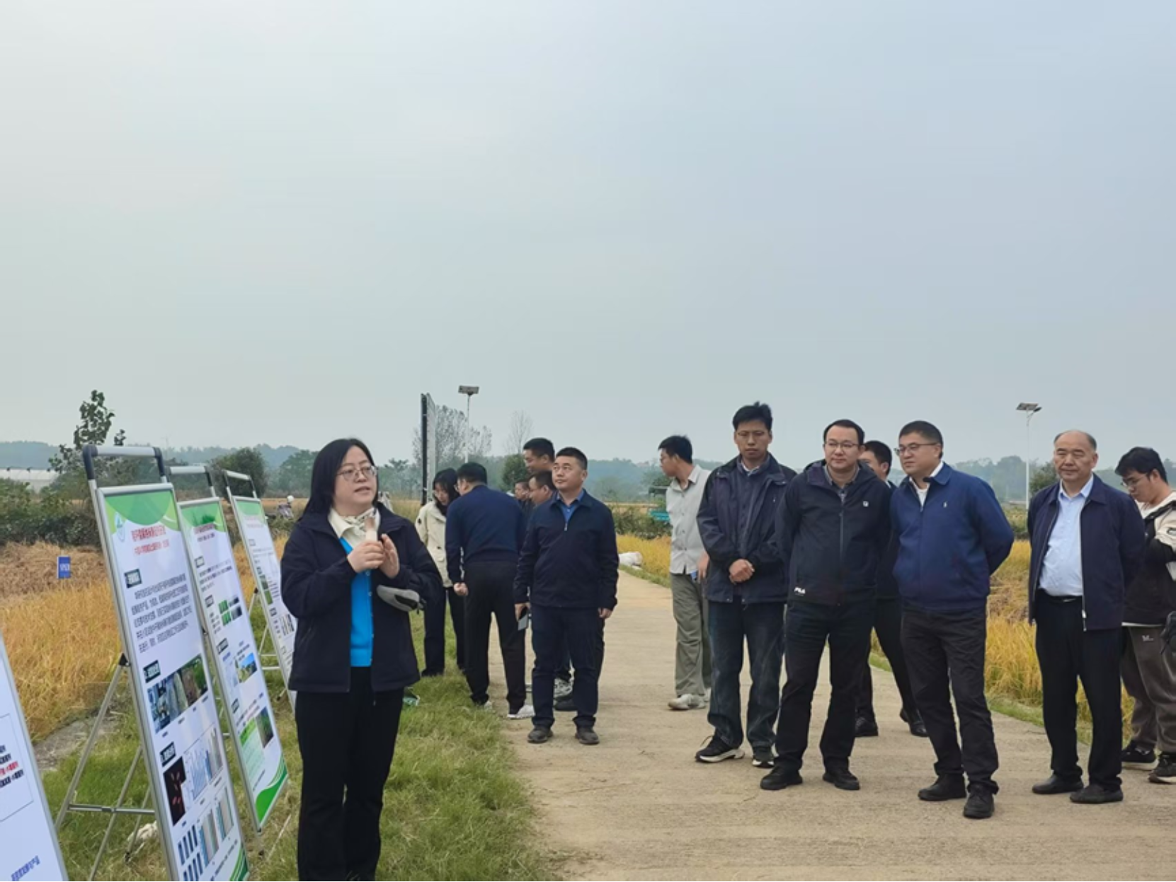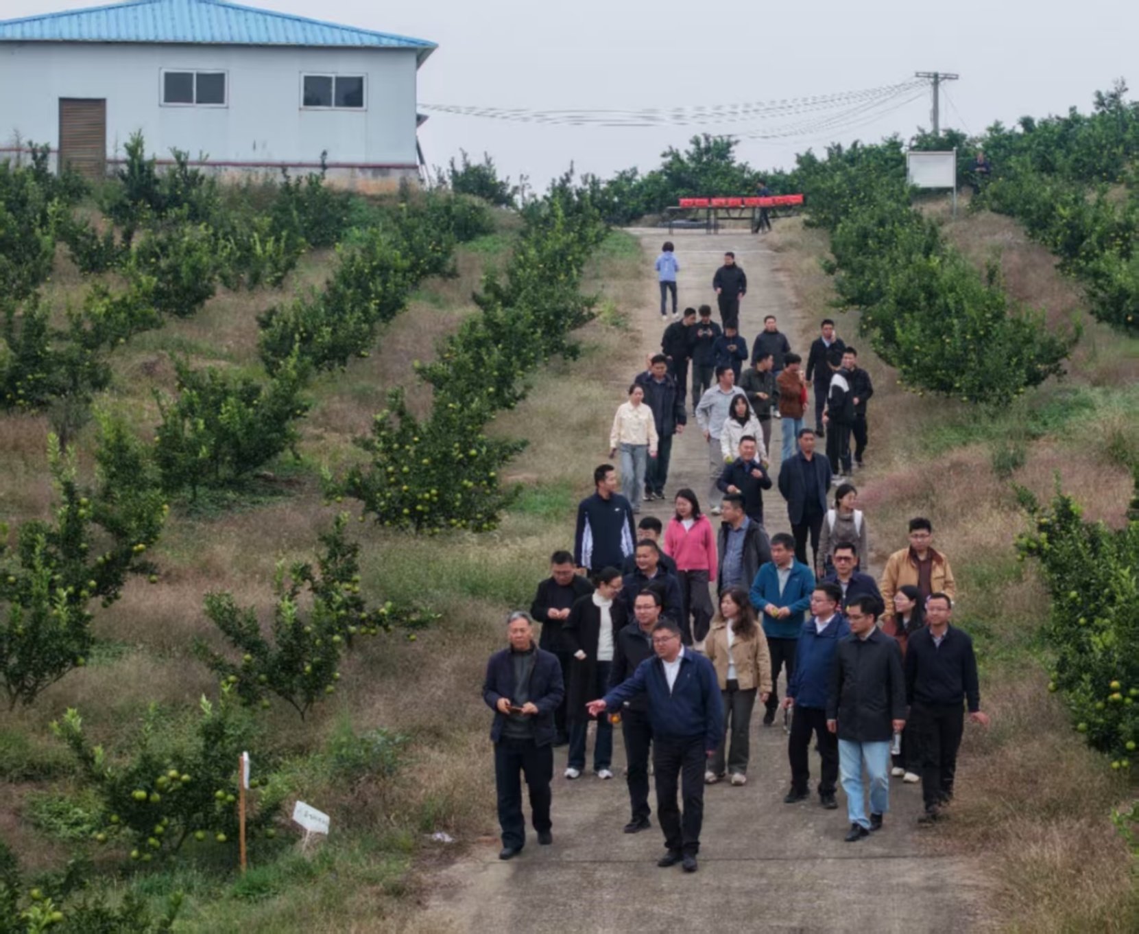 27日上午,与会专家一行前往祁阳红壤实验站,实地观摩了水稻和柑橘田间示范现场。在段英华研究员与黄晶副研究员的主持下,各技术负责人通过展板展示、实物讲解与田间操作演示,系统呈现了复合菌剂、纳米酶、高温灭活装备及专用肥料等多项关键技术成果。张振华院长在观摩中对该课题的组织与进展给予高度评价。他指出,课题实施组织严密、推进扎实,充分展现了跨区域、多单位协同攻关的科研优势,对南方红壤区农业可持续发展具有重要的示范意义。