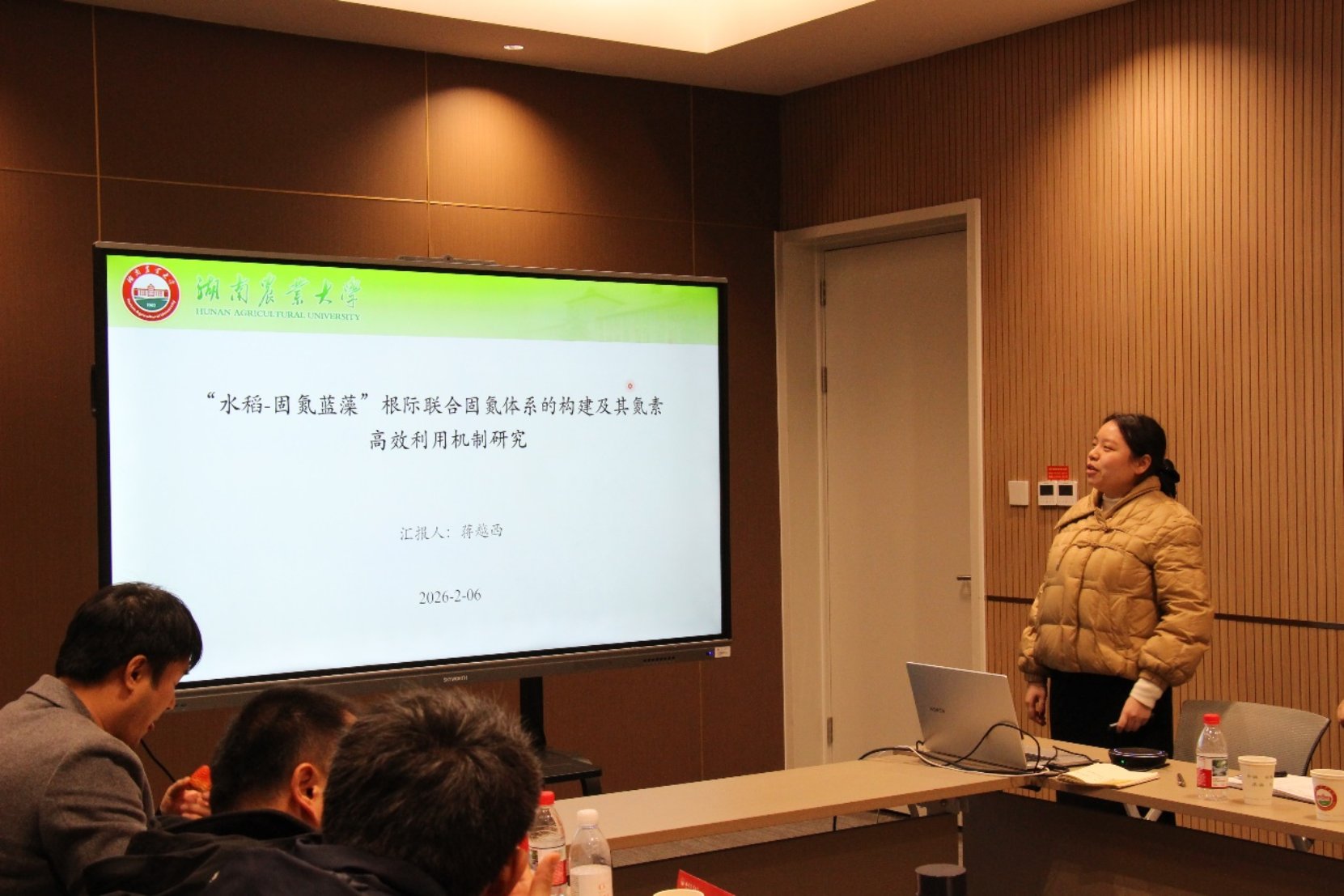 随后,罗劲松、聂亮等10余位青年教师,蒋越西、李龙城等5位博士后、分别就各自研究课题进行了专题汇报。研讨会围绕 “土壤污染与作物抗性”、“养分高效利用与调控”、“土壤生物与碳氮循环” 三大研究方向展开,汇报内容涵盖水稻与油菜对镉胁迫的分子响应机制、氮硫等养分高效利用的基因挖掘与信号网络、根际微生物与环境互作调控养分循环、外源添加物缓解重金属胁迫的机制、稻田系统碳氮转化与固碳潜力等多个前沿领域,系统展示了学院在农业资源与环境领域从理论到应用的研究链条,为后续凝练科学问题、申报高水平科研项目奠定了扎实基础。